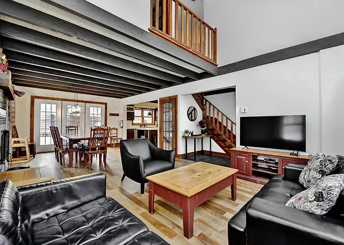 The kitchen amenities feature kitchenware, provided in a dining area. Guests can easily reach Quebec/Jean Lesage International airport, located 45 km from Chalet 9001 Chemin Des Alpages By Les Chalets Alpins Villa.